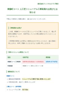 東陽町コート工事延期のお詫び文書作成